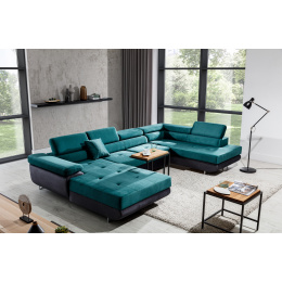 Objevte dokonalou kombinaci stylu, pohodlí a funkčnosti s naší rohovou pohovkou Rodrigo. Tato pohovka ve tvaru U je navržena tak, aby se stala středobodem vašeho obývacího pokoje, a to díky svému modernímu designu a elegantním detailům.