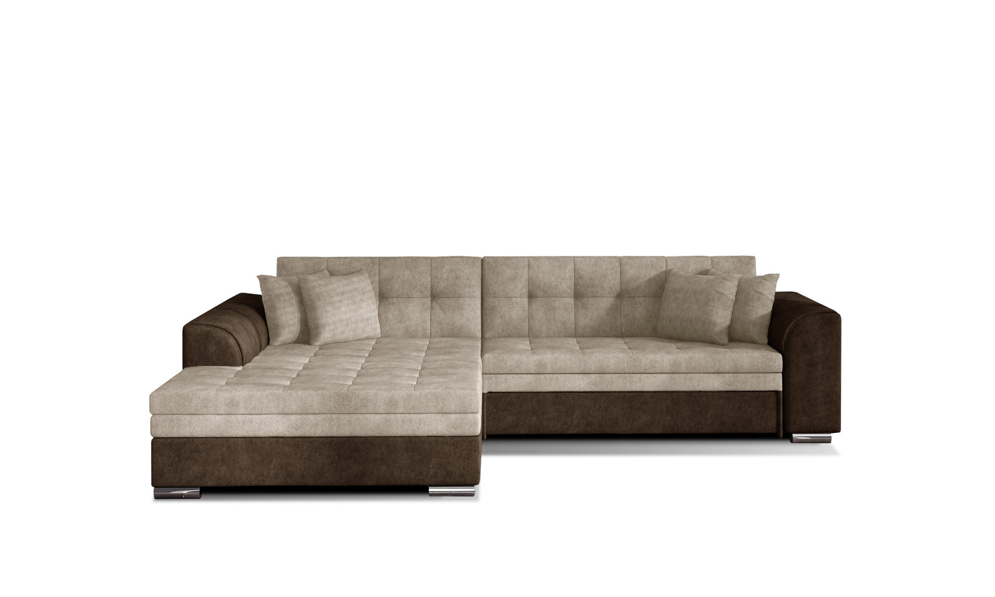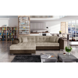 Rohová sedací souprava SORENTO je vyrobena z kvalitních materiálů. Konstrukce sedací soupravy je vyrobena z kombinace dřeva a dřevotřísky. Sedací část je vyrobena v kombinaci polyuretanové pěny T3040 + T2542 a vlnitých pružin. Na opěru sedací soupravy je použita polyuretanová pěna T2542. Sedací souprava je rozkládací pomocí rozkladu typu Delfín.