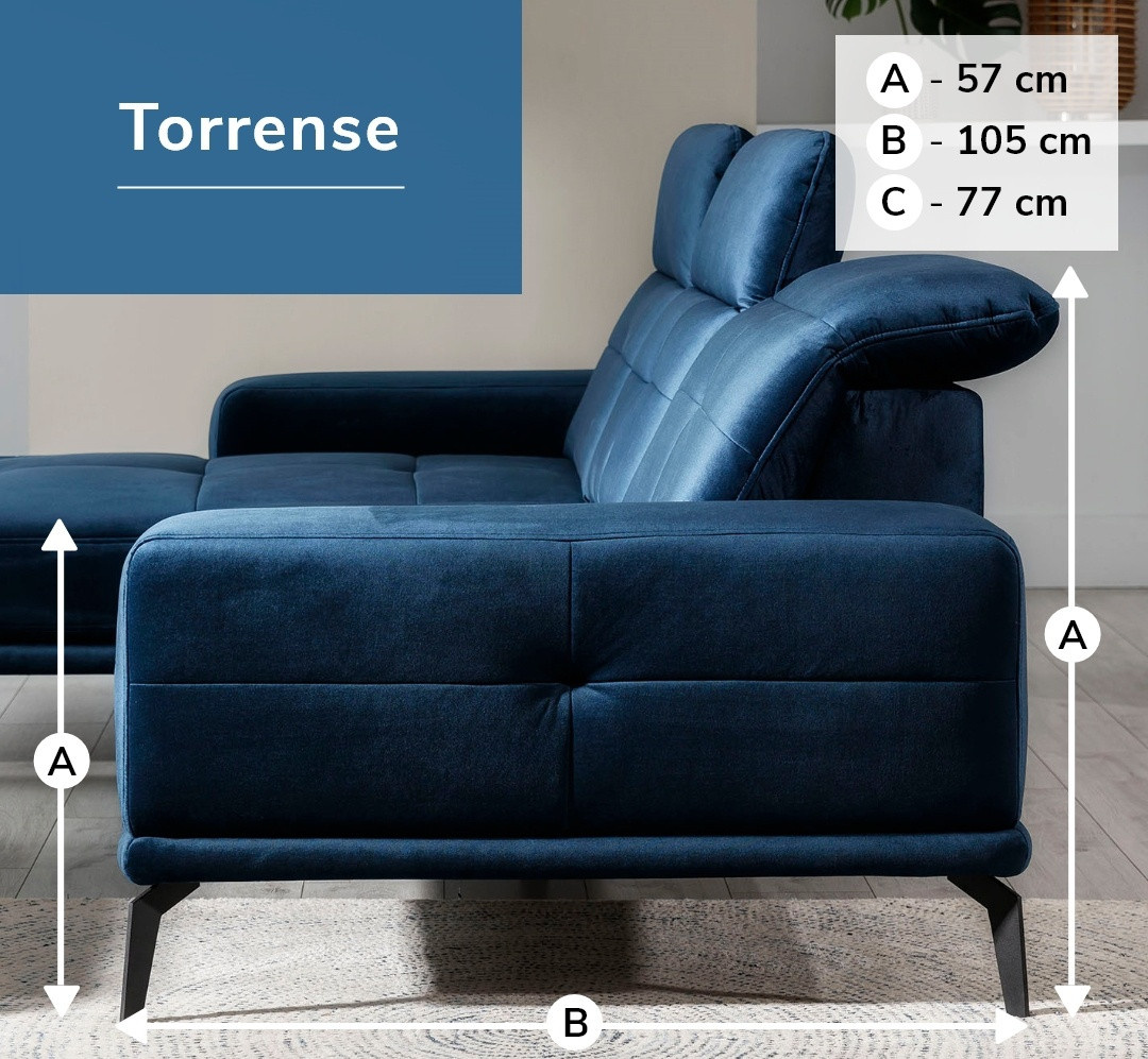 Rohová sedací souprava Torrense je vyrobena z kvalitních materiálů. Konstrukce sedací soupravy je vyrobena z kombinace dřeva a dřevotřísky. Sedací část je vyrobena v kombinaci HR pěny a bonelů. Sedací souprava není rozkládací. Pomocí taburetu můžete vytvořit plochu na spaní 215 x 140 cm.