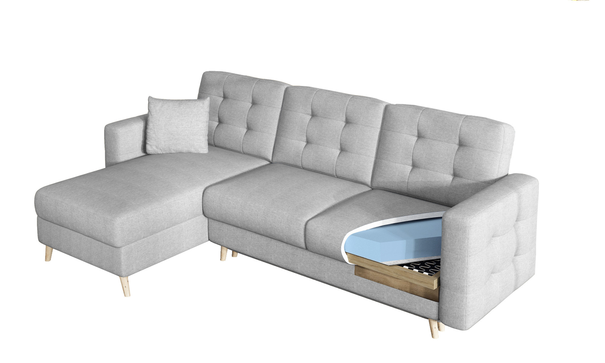 Sedací soupravu lze rozložit a vytvořit tak spací plochu o rozměrech 120x210 cm.
