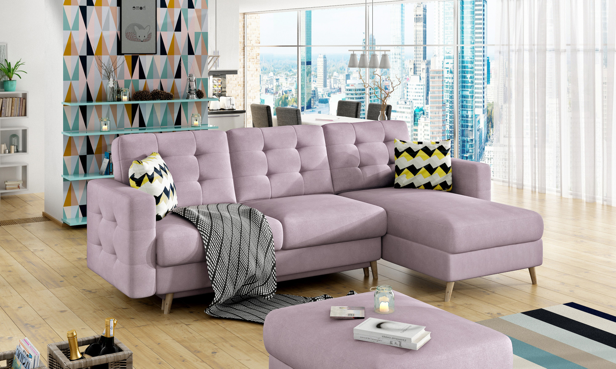Rohová sedací souprava ASGARD L je UNIVERSÁLNÍ - stranu rohu si můžete měnit podle Vašeho přání. Sedací souprava je vyrobena z kvalitních materiálů. Konstrukce sedací soupravy je vyrobena z kombinace dřeva a lamina. Sedací část je vyrobena z polyuretanové pěny T3040 a pružin, opěrná část je vyrobena z polyuretanové pěny T2542. Sedací souprava má úložný prostor pro úschovu lůžkovin.