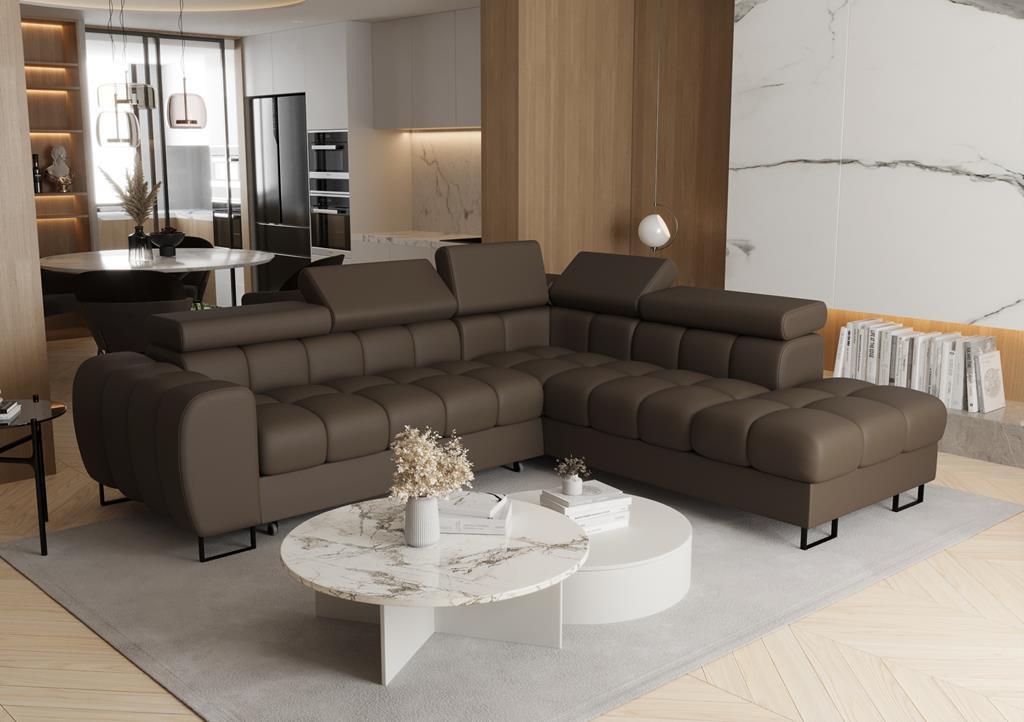 Rohová sedací souprava ASPEN 260x225 cm přírodní kůže - pravá, Hnědá kůže