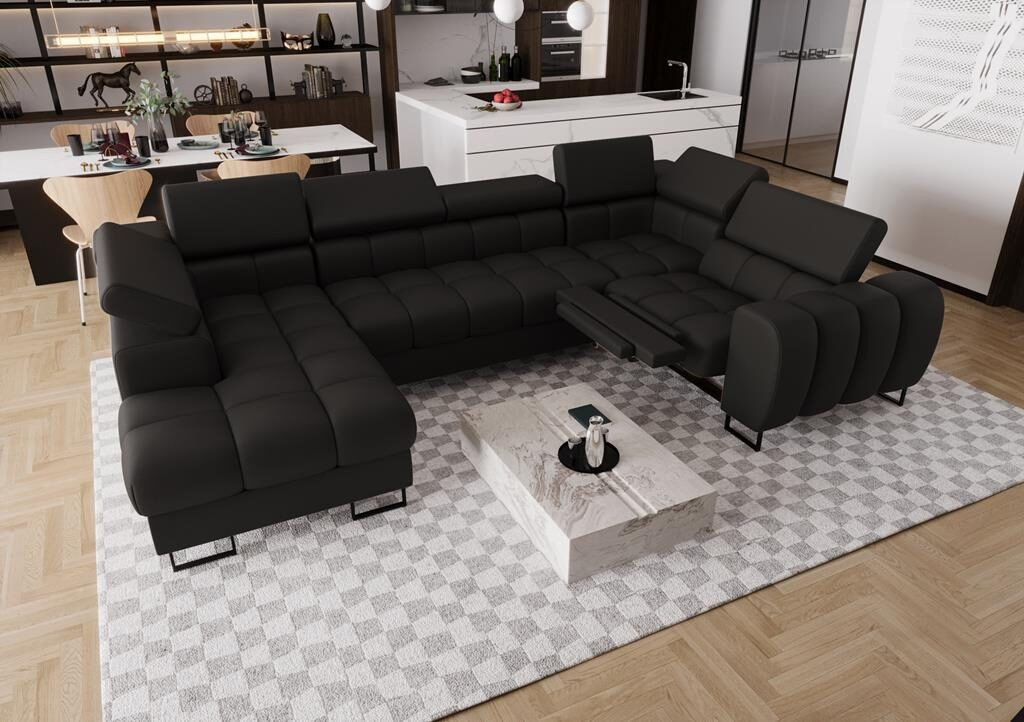 Rohová sedací souprava ASPEN MAX II , relax 198x350x170 cm přírodní kůže - černá kůže , pravá