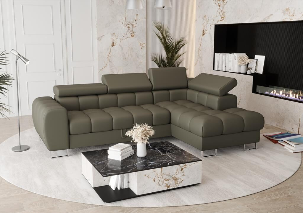 Rohová sedací souprava ASPEN MINI přírodní kůže 260x170 cm - pravá, Olivová kůže