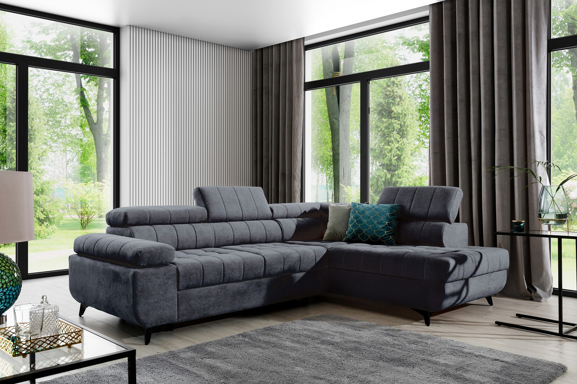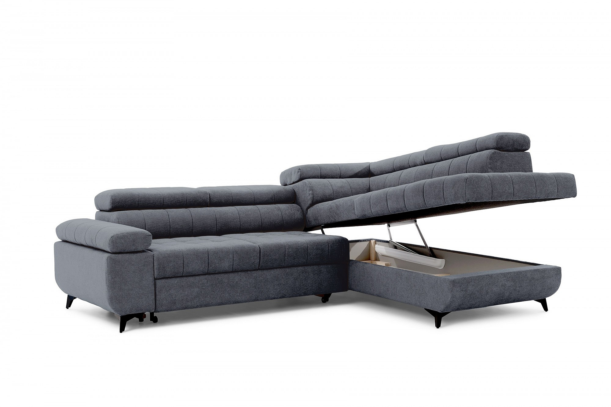 Rohová sedačka Dragonis L s funkcí spaní / Ditra New 15 / černé nohy / pravá strana