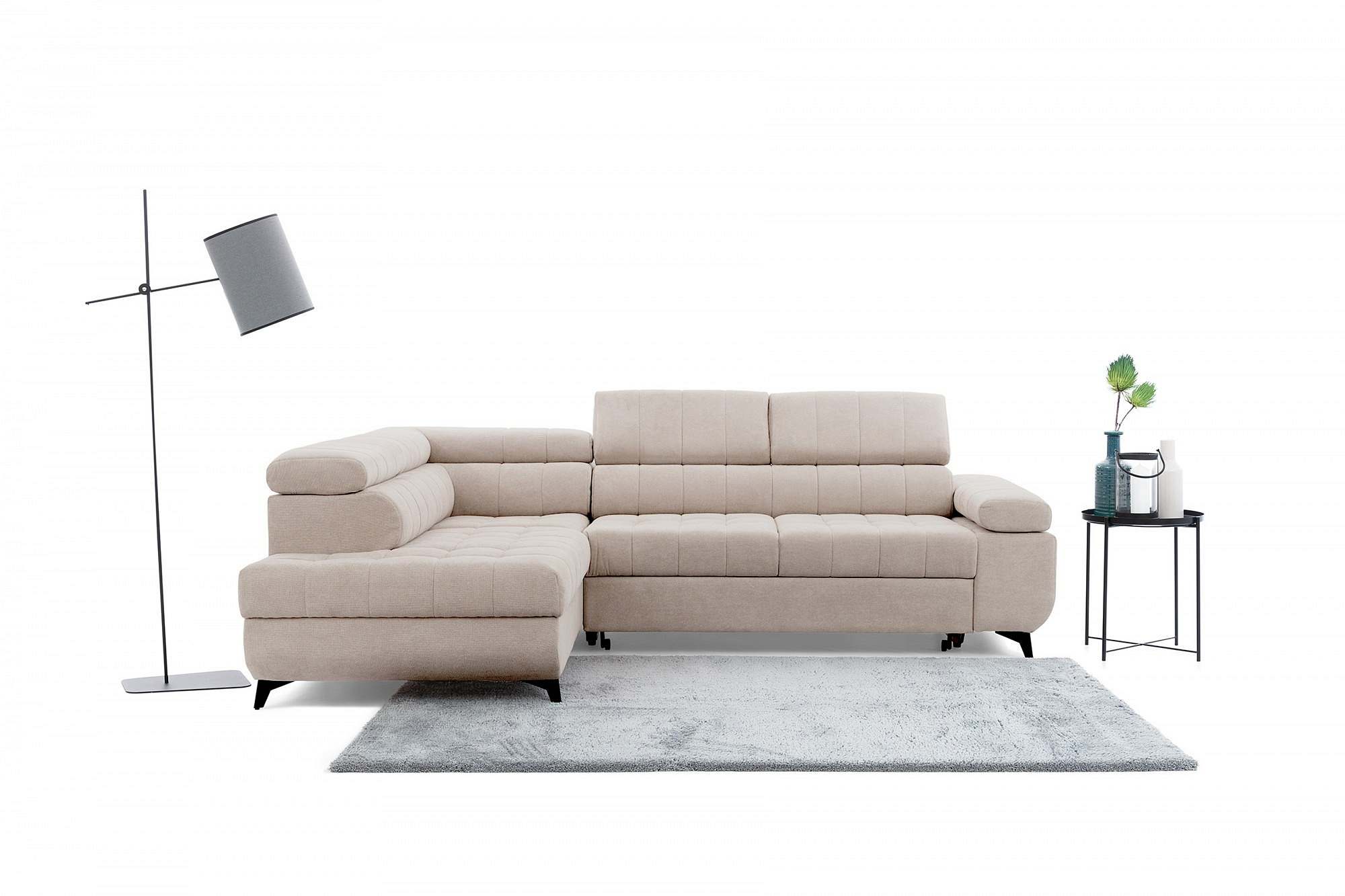 Rohová sedačka Dragonis L s funkcí spaní / Ditra New 20 / černé nohy / levá strana