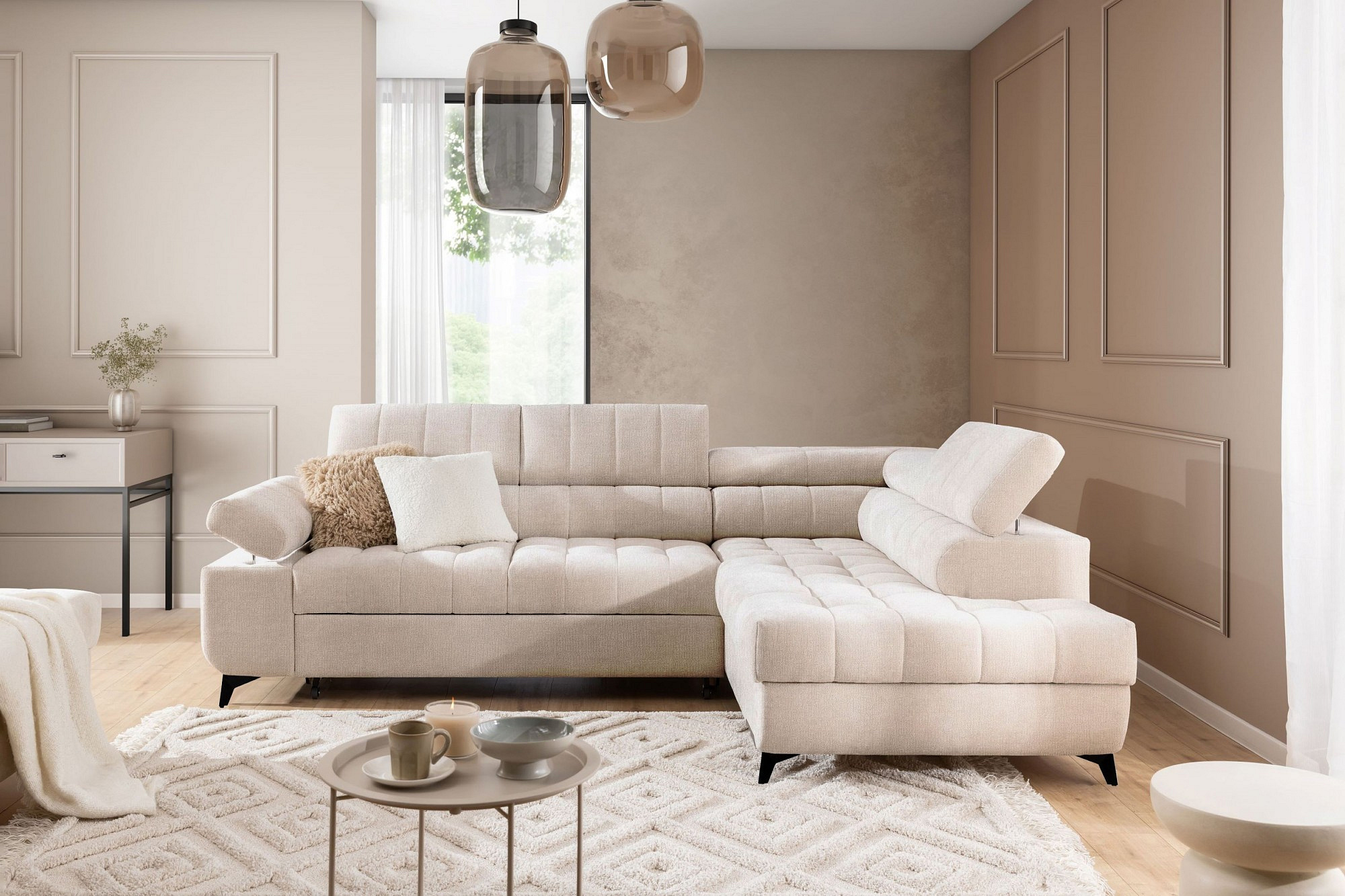 Rohová sedačka Dragonis L s funkcí spaní / Perfect Harmony 07 / černé nohy / pravá strana