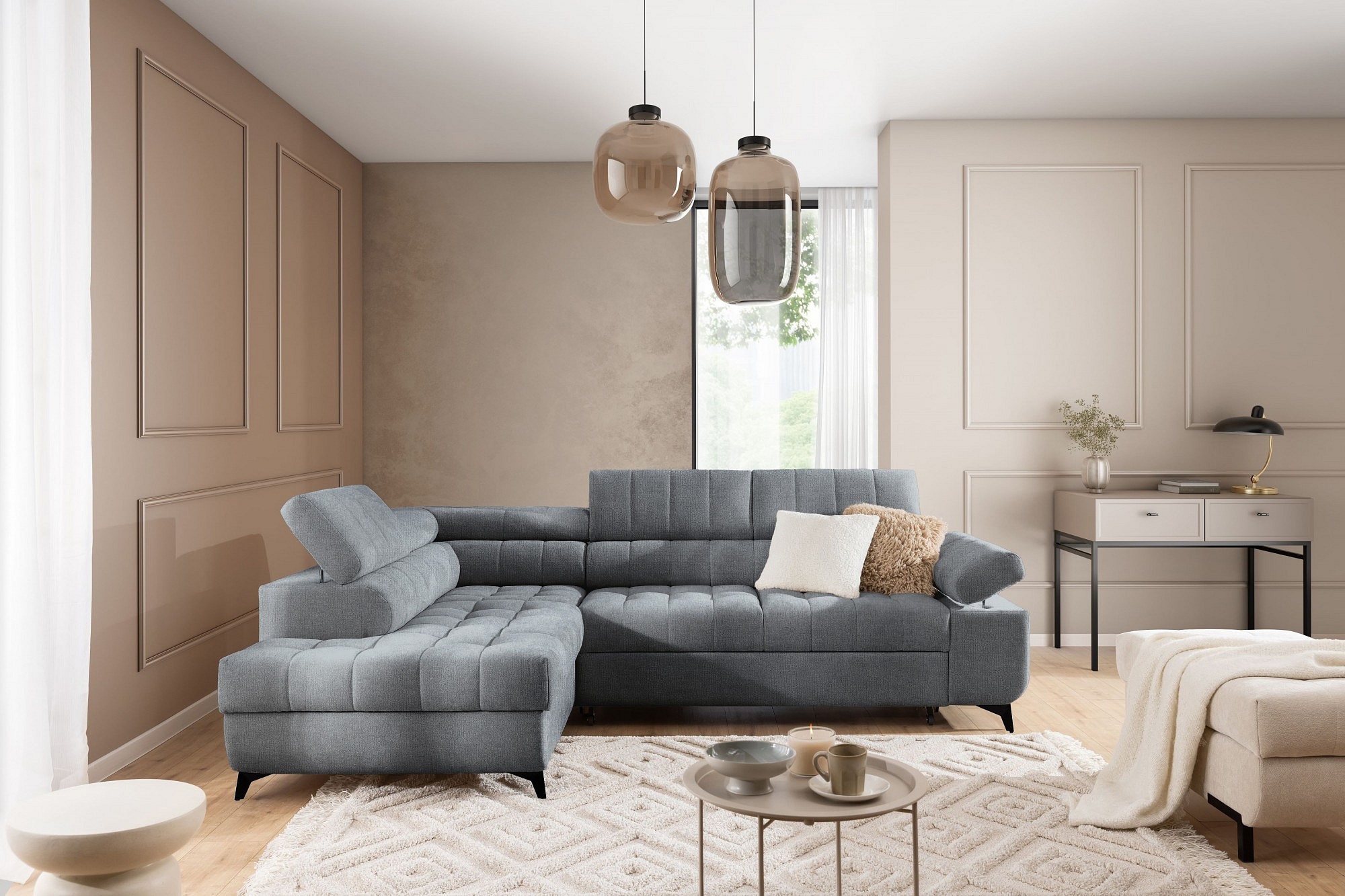 Rohová sedačka Dragonis L s funkcí spaní / Perfect Harmony 85 / černé nohy / levá strana