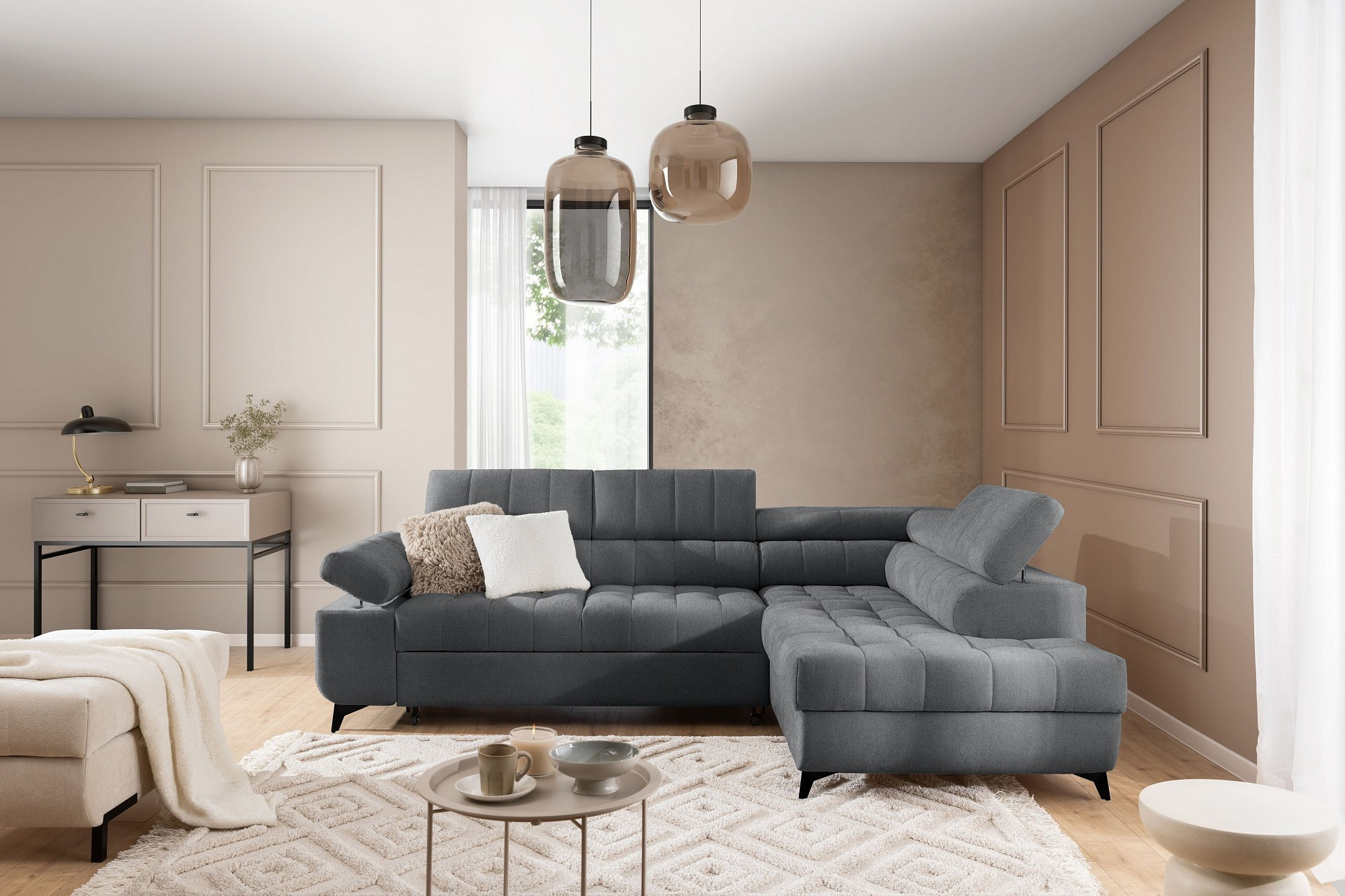 Rohová sedačka Dragonis L s funkcí spaní / Vibe 95 / černé nohy / pravá strana