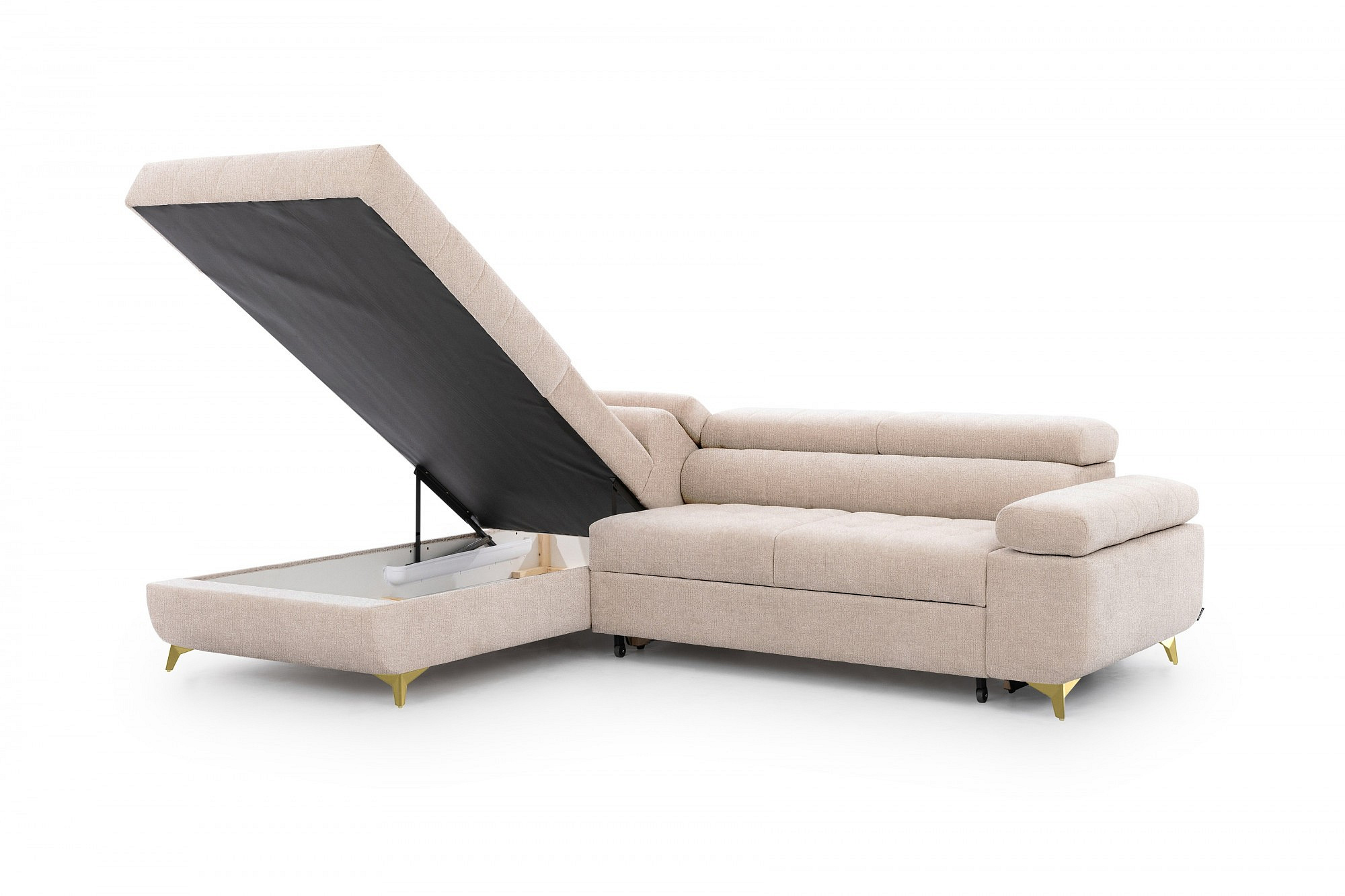 Rohová sedačka Dragonis L s funkcí spaní / zlaté nohy