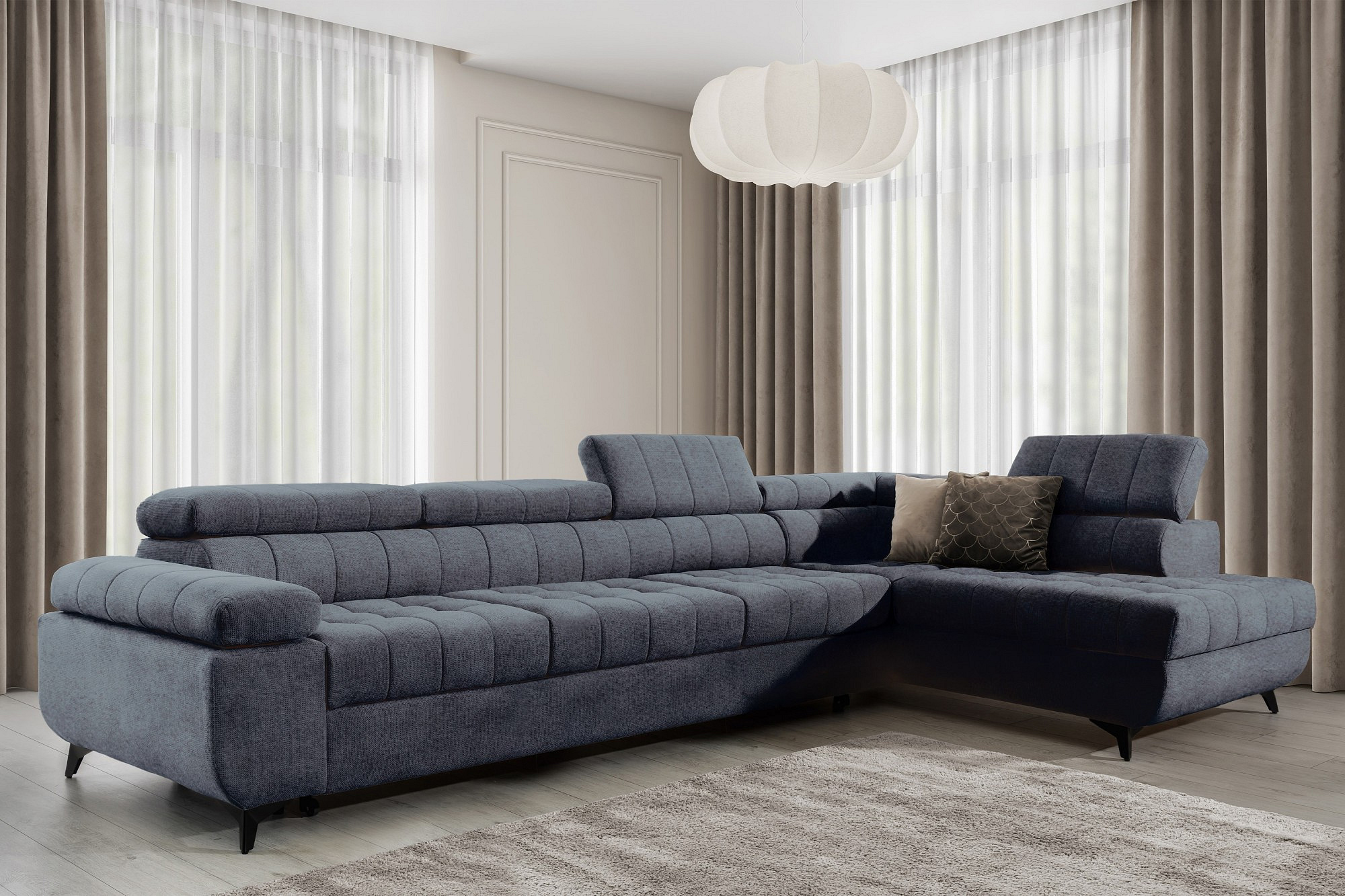 Rohová sedačka Dragonis Maxi s funkcí spaní / Ditra New 15 / černé nohy / pravá strana