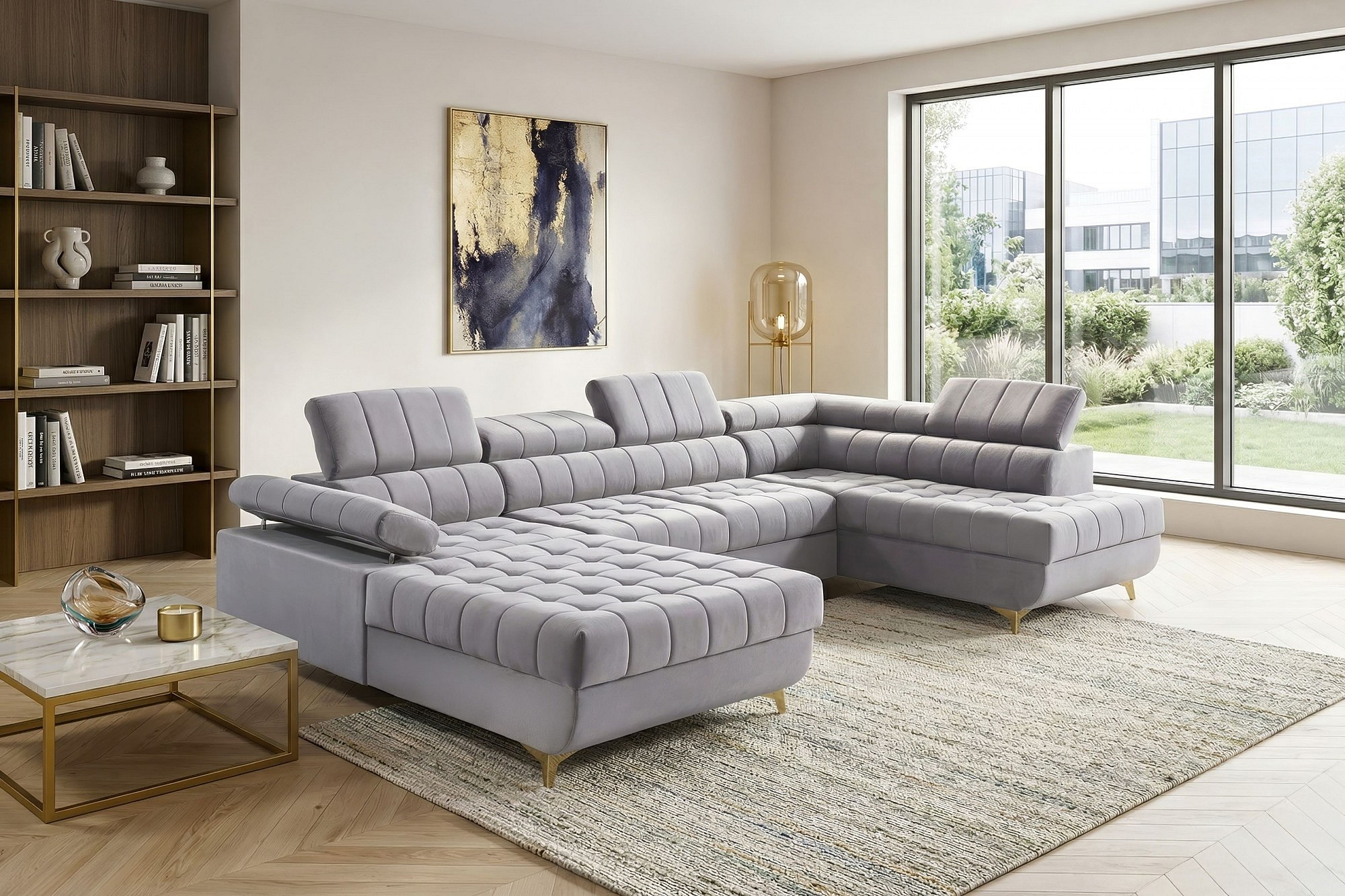 Rohová sedačka Dragonis U II s rozkladem / zlaté nohy