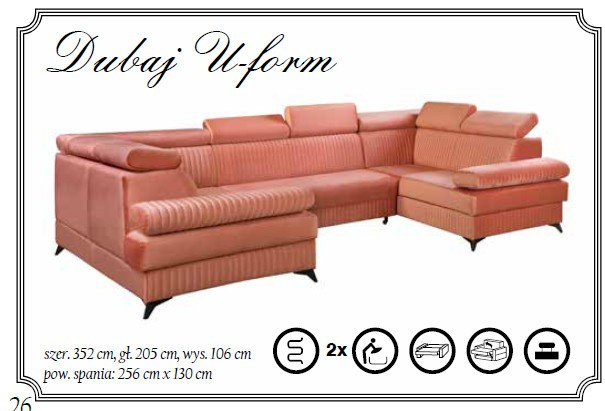 Představujeme vám rohovou sedačku Dubaj-U, dokonalou kombinaci elegance, komfortu a praktičnosti. Tato impozantní sedačka se stane dominantou vašeho obývacího pokoje a poskytne vám i vaší rodině ideální prostor pro relaxaci, odpočinek a společné chvíle.