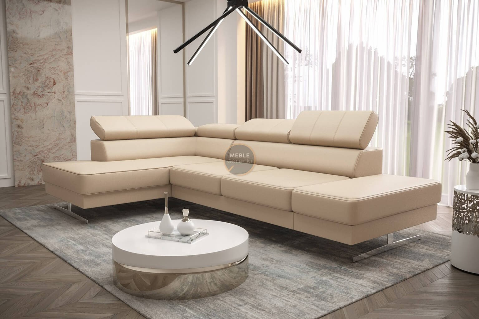 Rohová sedací souprava EMPORIO MINI 300x180 přírodní kůže - levá, Béžová kůže