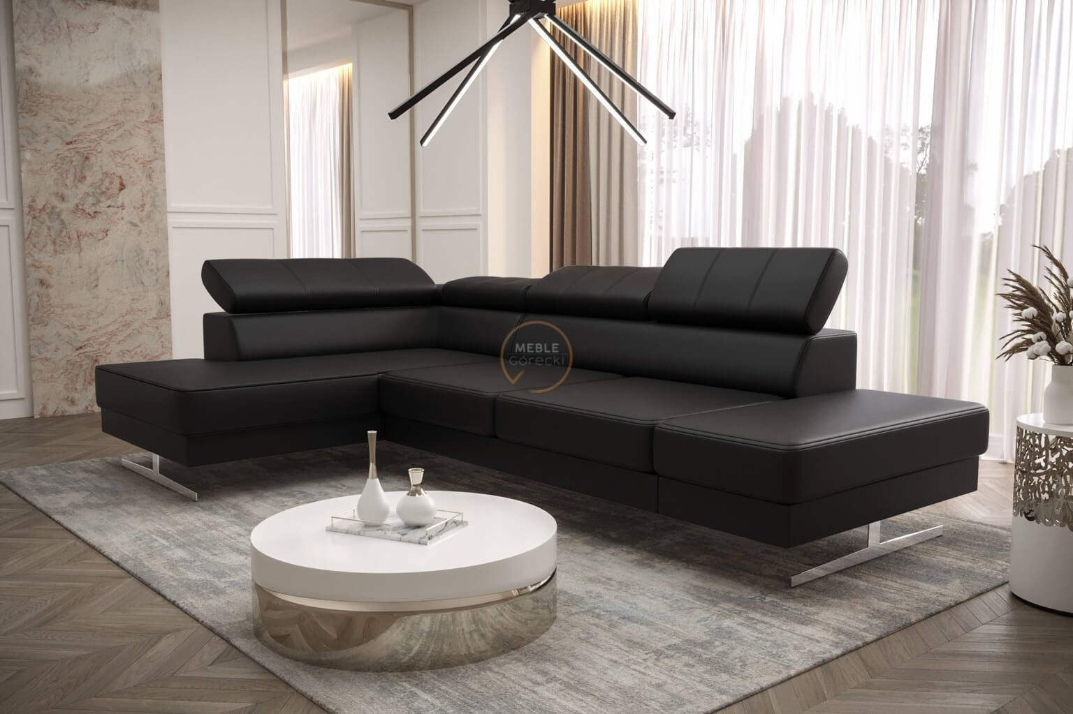 Rohová sedací souprava EMPORIO MINI 300x180 přírodní kůže - černá kůže , levá