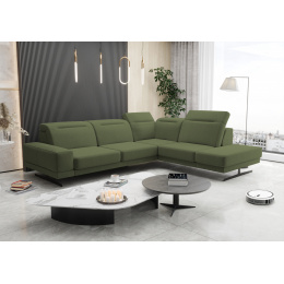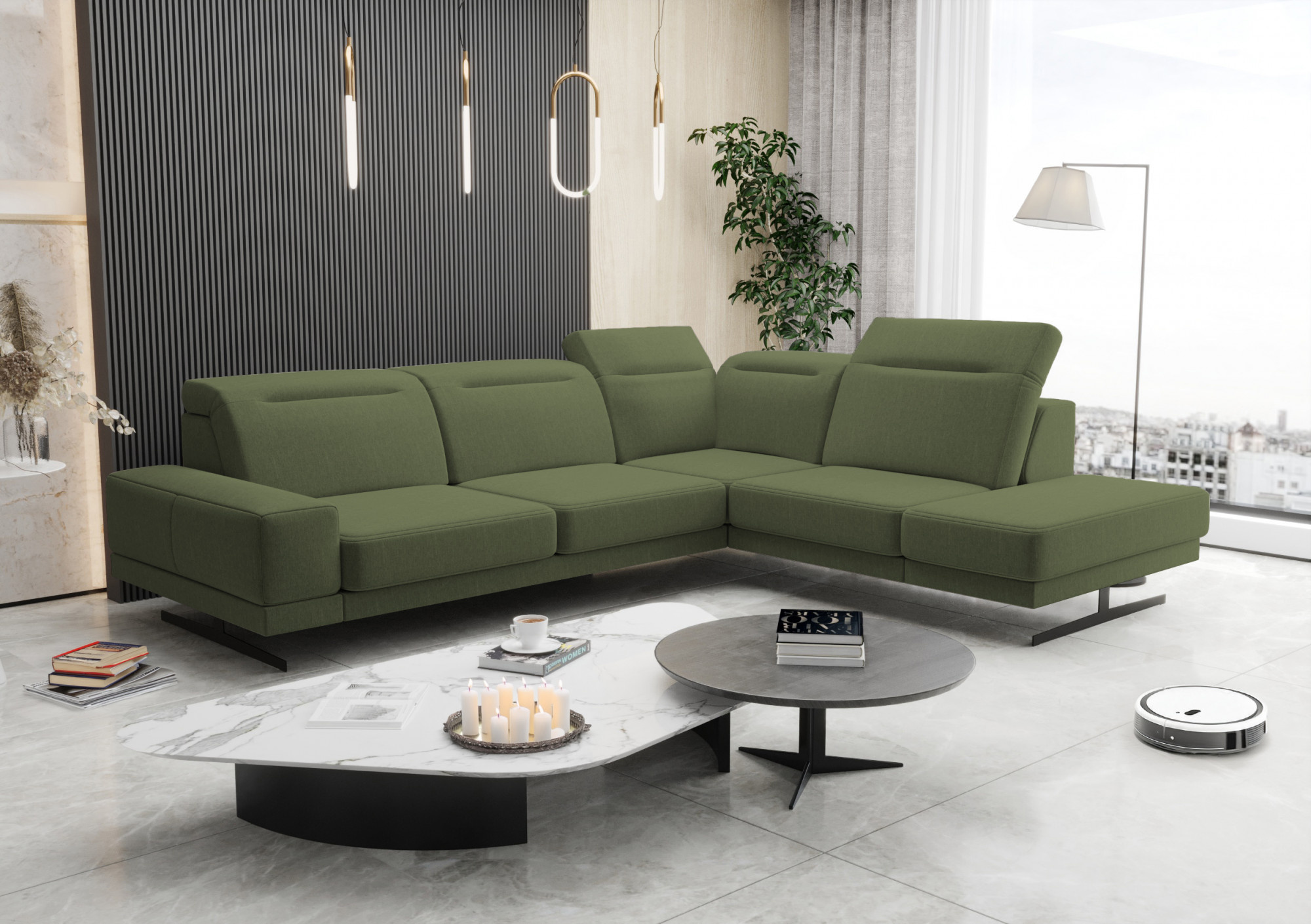 Rohová sedací souprava FIORE vyniká svým moderním designem a elegantní zelenou barvou, která dodá vašemu interiéru svěží a sofistikovaný vzhled. Její pravé provedení je ideální pro umístění do rohu místnosti, čímž efektivně využijete prostor a vytvoříte útulné místo pro relaxaci.