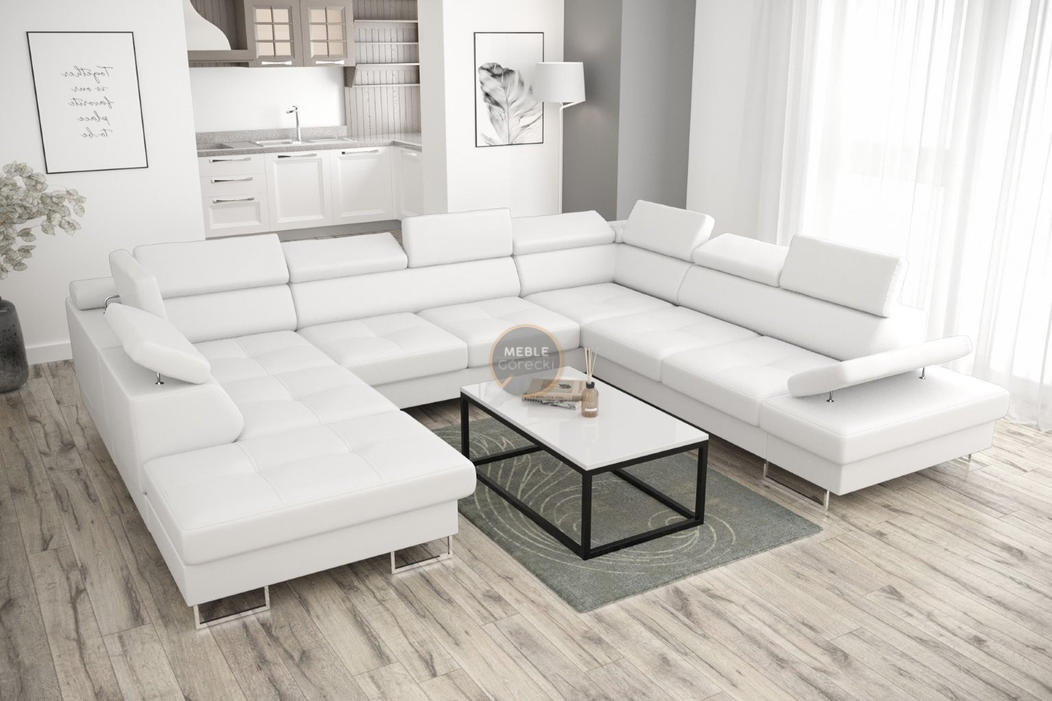 Rohová sedací souprava GALAXY MAX I s funkcí spaní 280x350x225 - bílá eko kůže, pravá