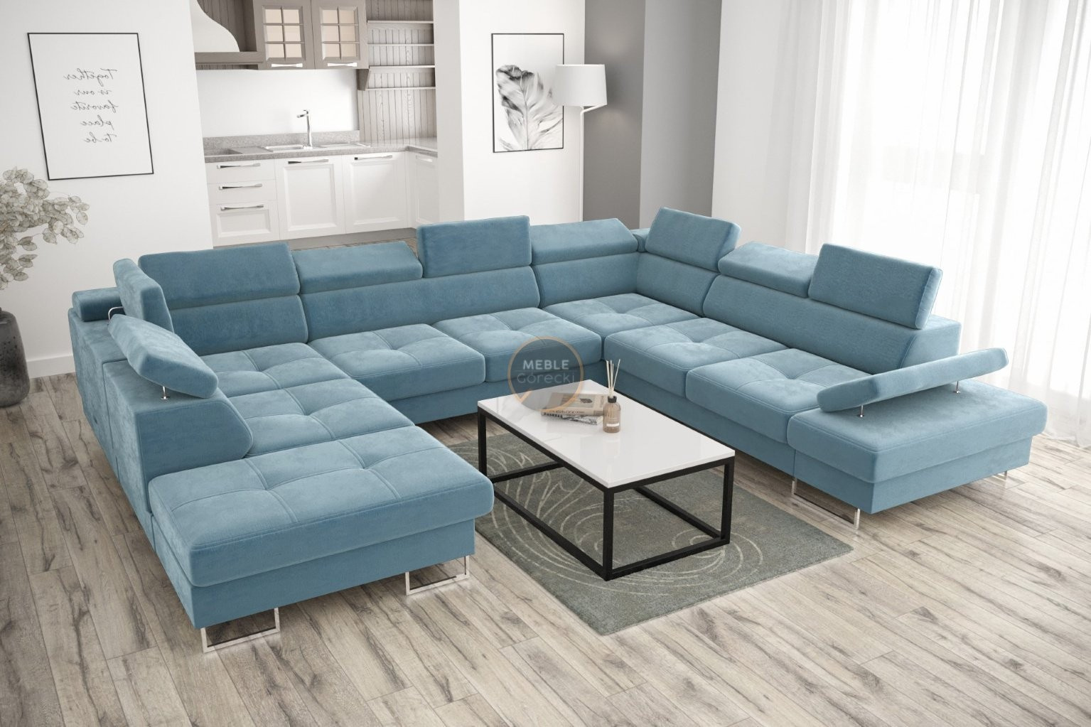 Rohová sedací souprava GALAXY MAX I s funkcí spaní 280x350x225 - modrá, pravá