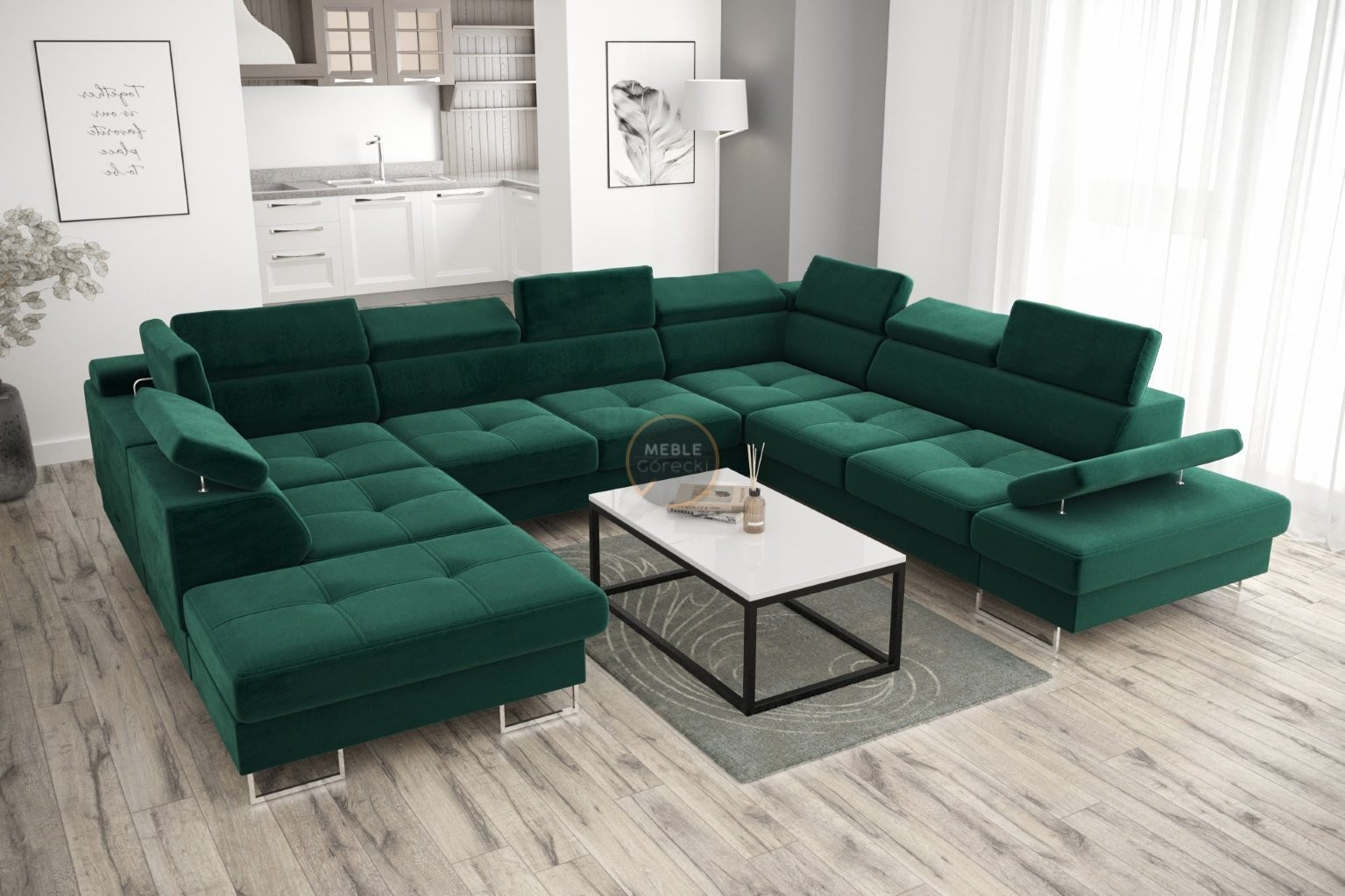 Rohová sedací souprava GALAXY MAX I s funkcí spaní 280x350x225 - zelená , pravá