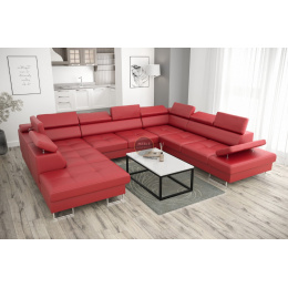 Rohová sedací souprava GALAXY MAX I s funkcí spaní 280X350X225 přírodní kůže - červená kůže, Pravá strana