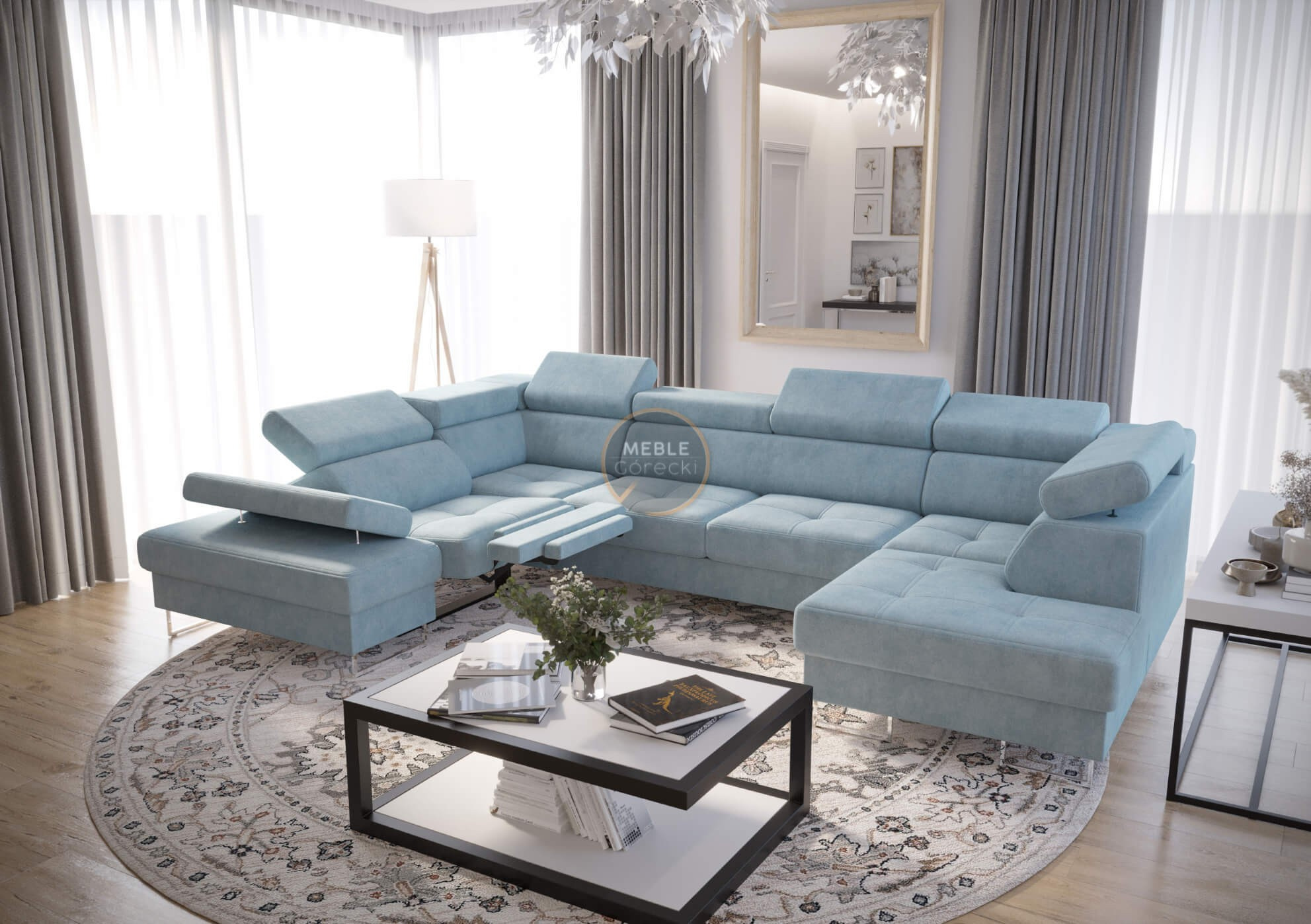 Rohová sedací souprava GALAXY MAX II , relax s funkcí spaní 215x350x170 - modrá, levá