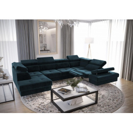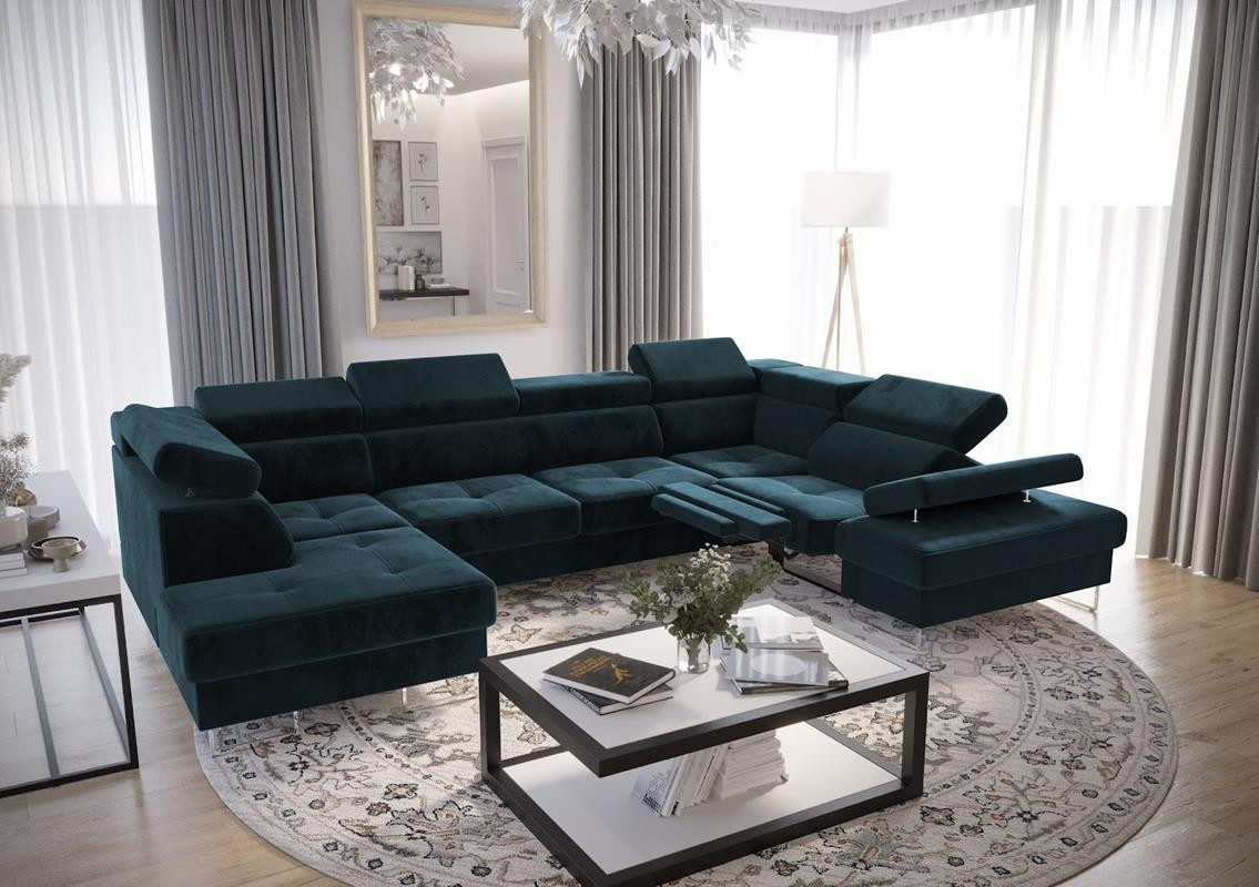 Rohová sedací souprava GALAXY MAX II , relax s funkcí spaní 215x350x170 - modrá, pravá