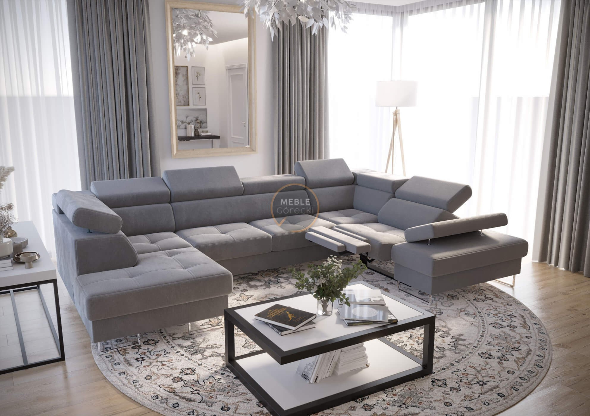 Rohová sedací souprava GALAXY MAX II , relax s funkcí spaní 215x350x170 - šedá , pravá