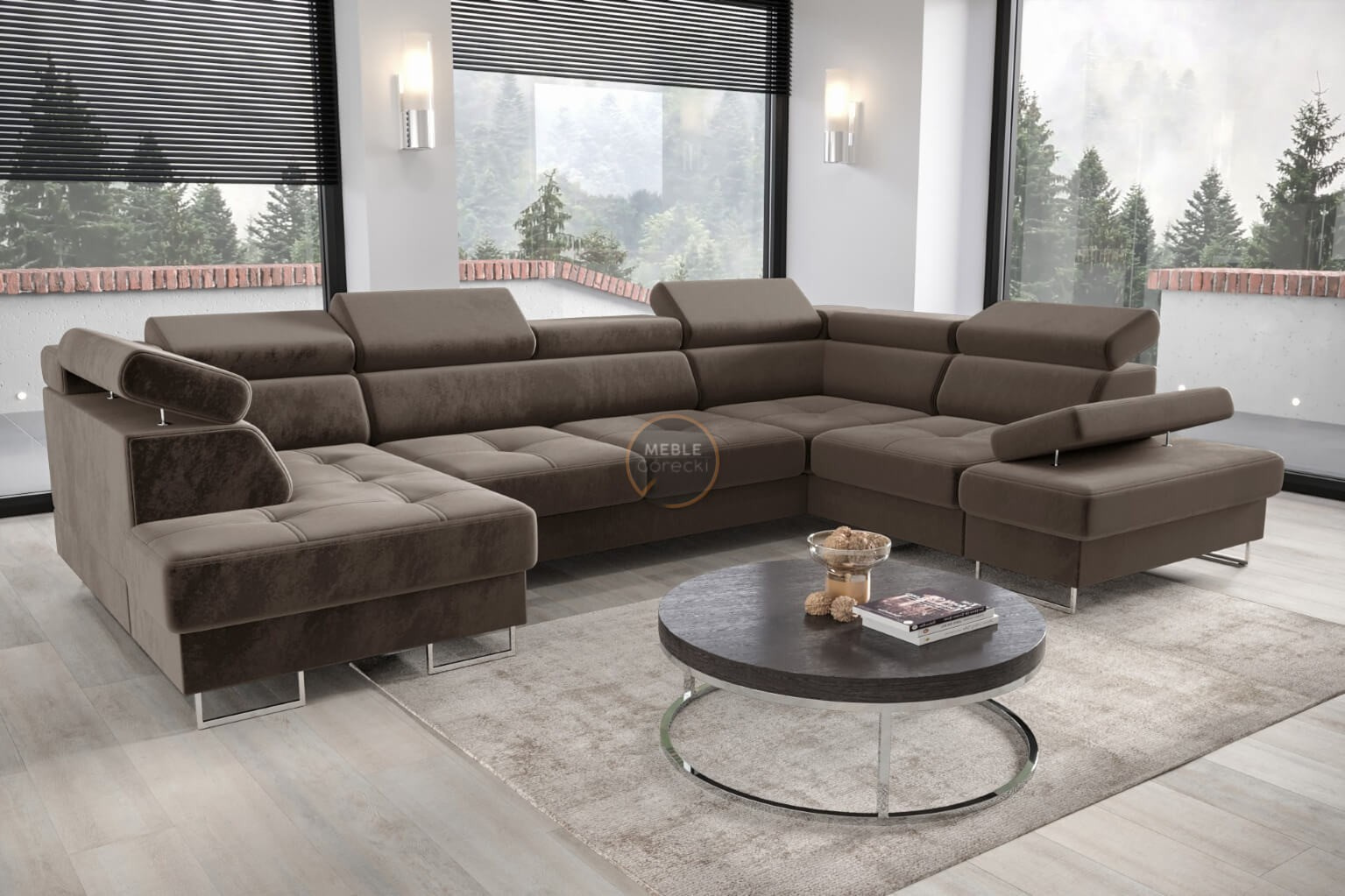 Rohová sedací souprava GALAXY MAX II s funkcí spaní 210x350x165 - hnědá , pravá
