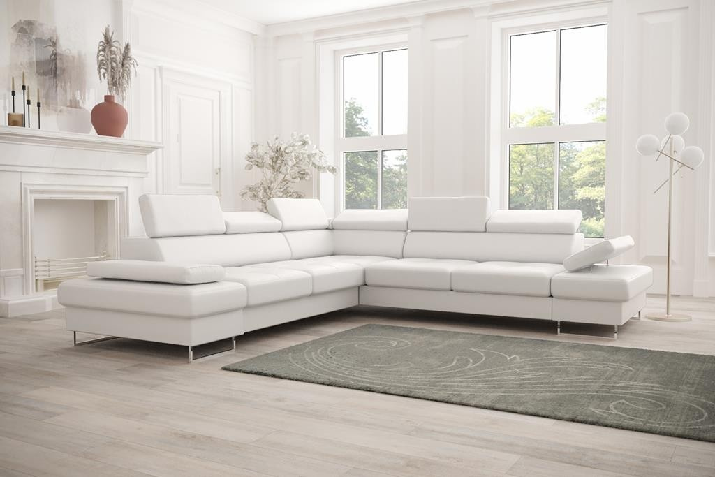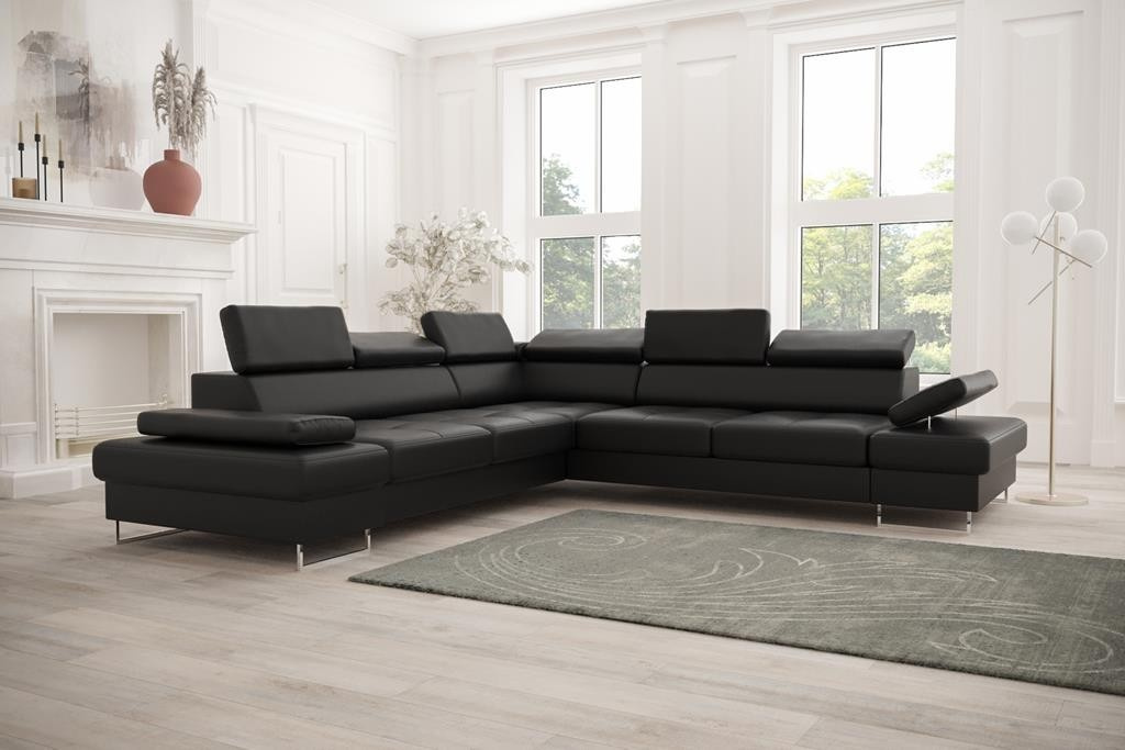 Rohová sedací souprava GALAXY MAX s funkcí spaní 280X280 přírodní kůže - Levá strana, černá kůže