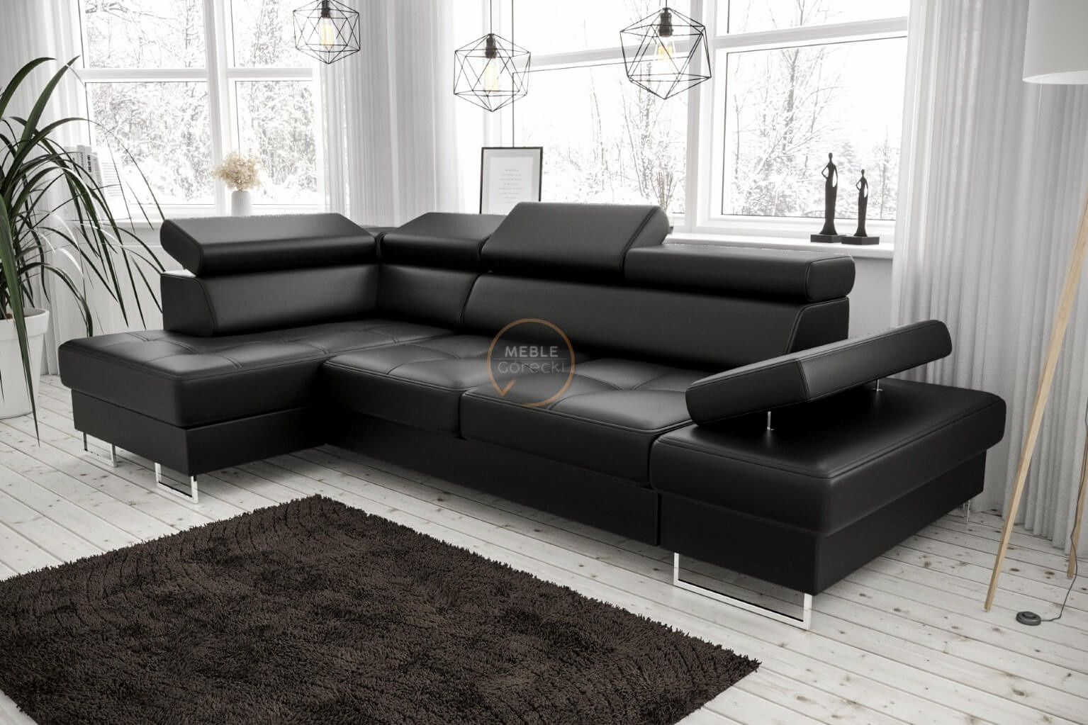 Rohová sedací souprava GALAXY MINI 170x280 - černá eko kůže, levá
