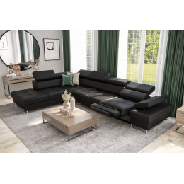 Rohová sedací souprava GALAXY , relax 225x350 cm přírodní kůže - černá kůže , levá