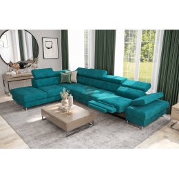Rohová sedací souprava GALAXY , relax s funkcí spaní 225X350 cm - tyrkysová, levá