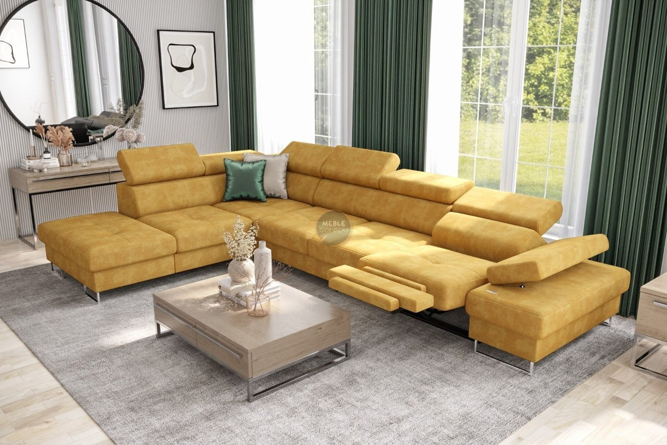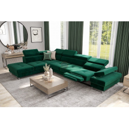 Rohová sedací souprava GALAXY , relax s funkcí spaní 225X350 cm - zelená , levá