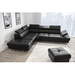 Rohová sedací souprava GALAXY s funkcí spaní 225x280 - černá eko kůže , levá