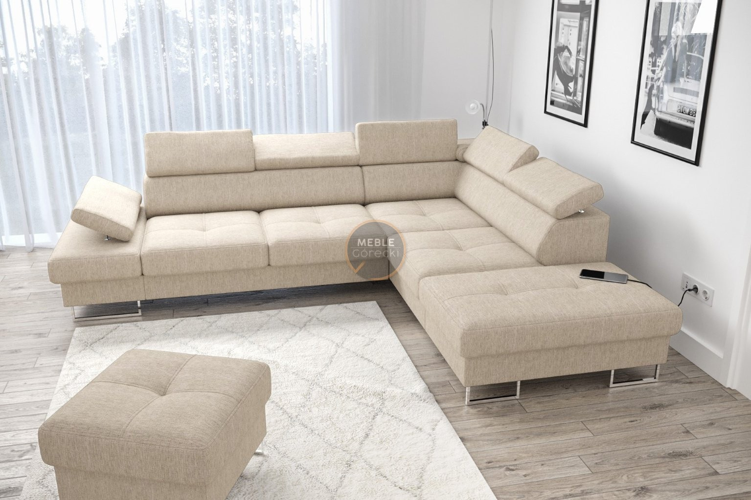 Rohová sedací souprava GALAXY s funkcí spaní 225x280 - pravá, béžová