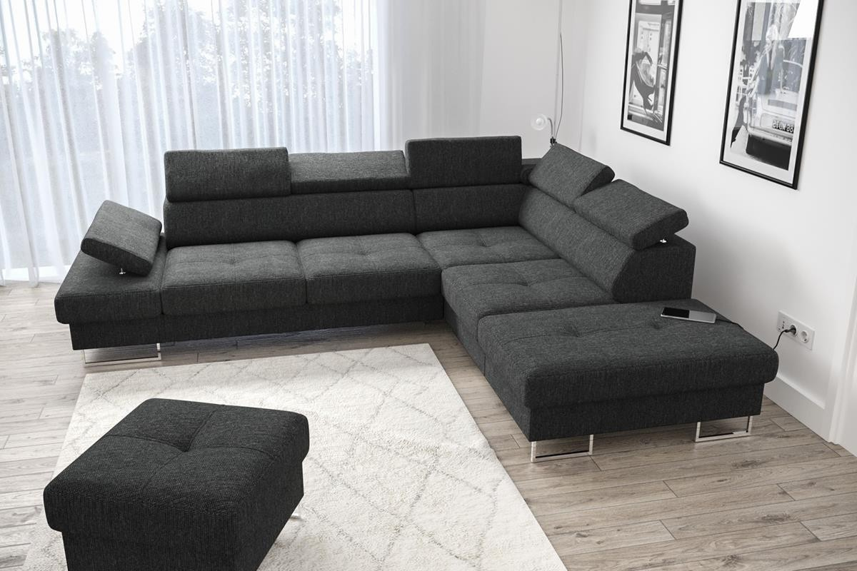 Rohová sedací souprava GALAXY s funkcí spaní 225x280 - černá , pravá