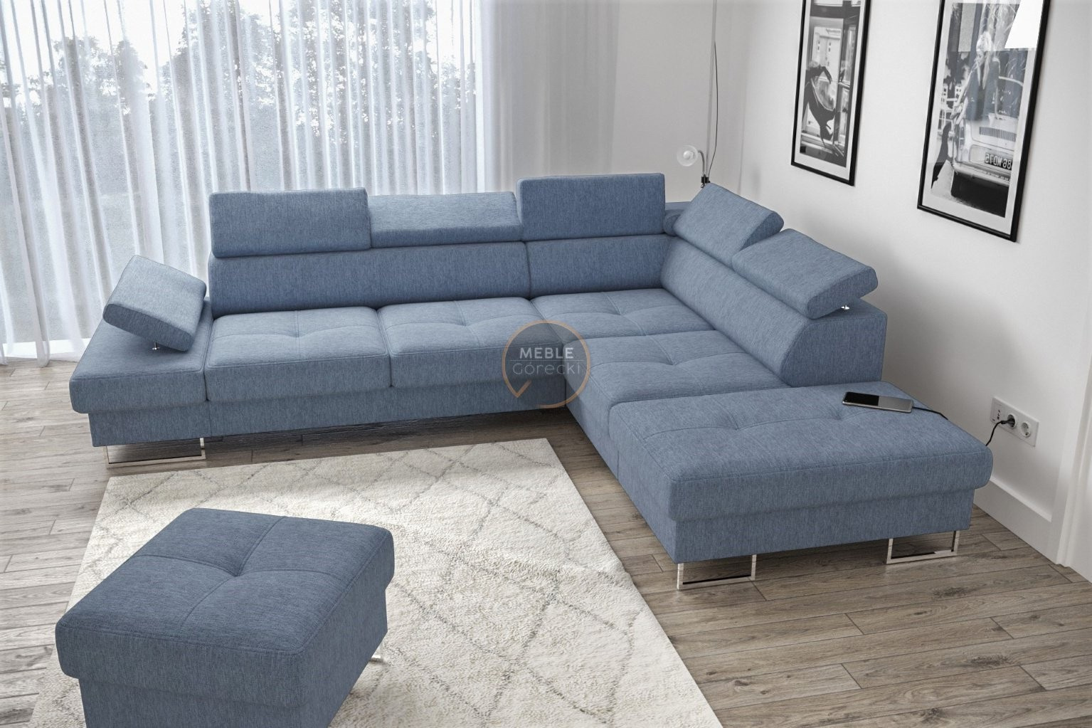 Rohová sedací souprava GALAXY s funkcí spaní 225x280 - modrá , pravá