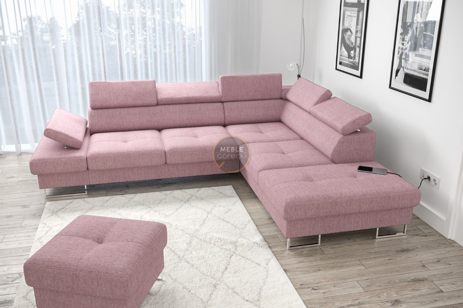 Rohová sedací souprava GALAXY s funkcí spaní 225x280 - pravá, růžová