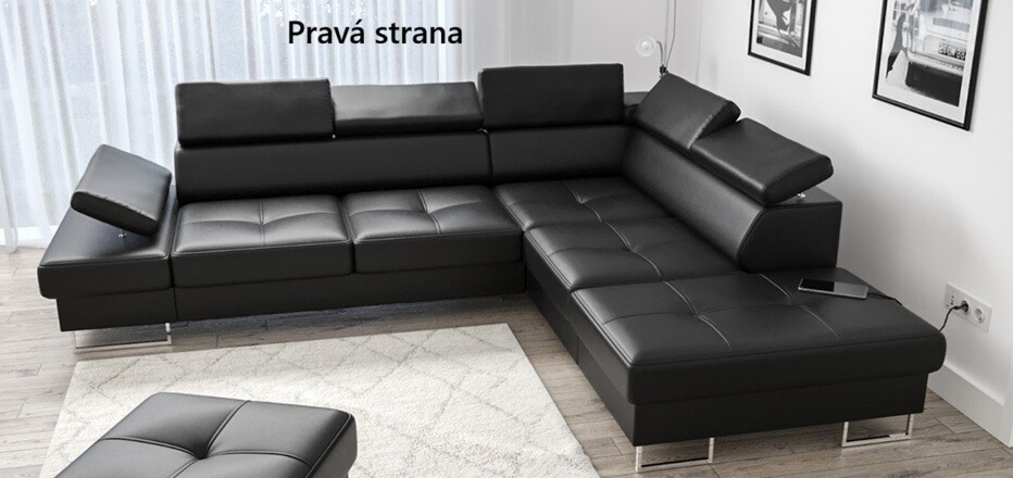 Rohová sedací souprava GALAXY s funkcí spaní 225x280 přírodní kůže - Levá strana, černá kůže