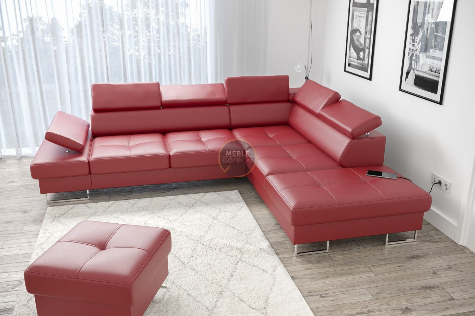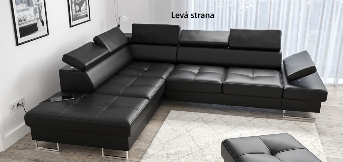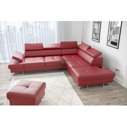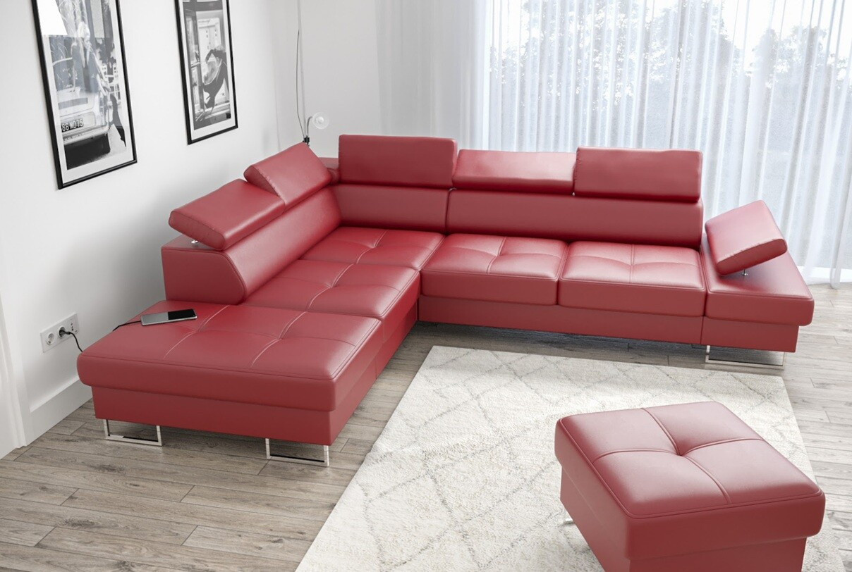 Rohová sedací souprava GALAXY s funkcí spaní 225x280 přírodní kůže - Pravá strana, Červená kůže