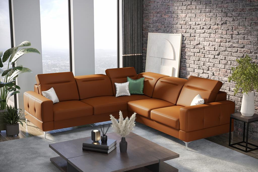 Rohová sedačka má nastavitelné, vícestupňové opěrky hlavy, chromované ozdobné nožky, sedáky s ozdobným prošíváním, které jsou vyrobeny na vlnitých pružinách a vysoce elastické pěně, což zajišťuje vysoký komfort používání a zabraňuje deformaci nejčastěji používaných ploch. Stranu rohové sedačky určuje úložný prostor na lůžkoviny. Kontejner vpravo - pravá strana, kontejner vlevo - levá strana (stojíc čelem k nábytku).