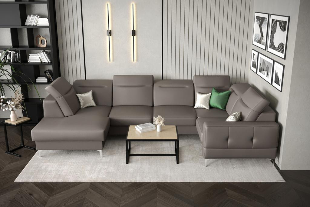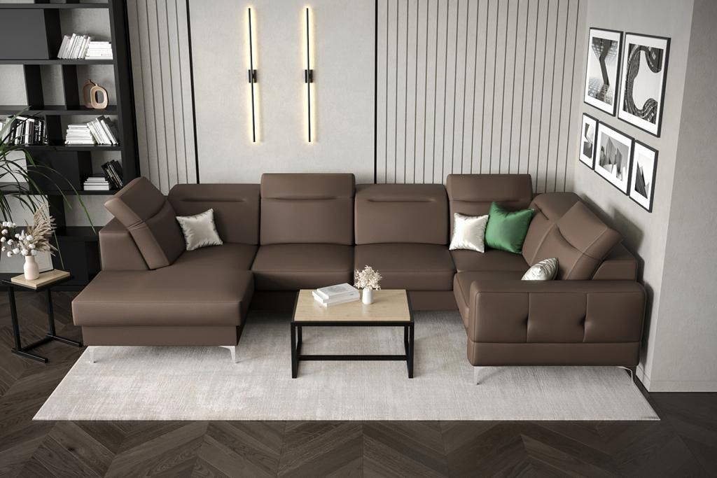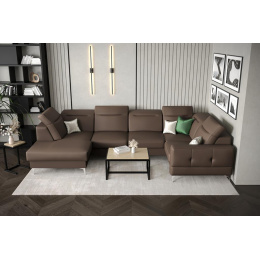 Rohová sedací souprava MALIBU MAX II 180x350x182 cm přírodní kůže - Hnědá kůže, Pravá strana