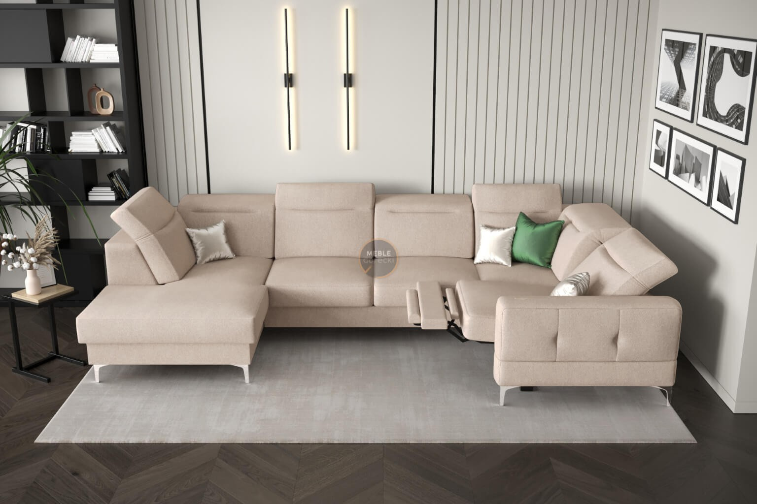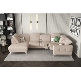 Rohová sedací souprava MALIBU MAX II s funkcí spaní a relaxací 180x350x182 cm - béžová, Pravá strana