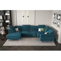 Rohová sedací souprava MALIBU MAX II s funkcí spaní a relaxací 180x350x182 cm - modrá, Pravá strana