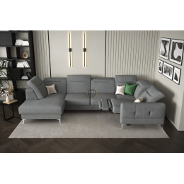 Rohová sedací souprava MALIBU MAX II s funkcí spaní a relaxací 180x350x182 cm - šedá , pravá strana