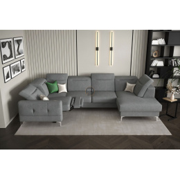 Rohová sedací souprava MALIBU MAX II s funkcí spaní a relaxací 180x350x182 cm - šedá , levá strana