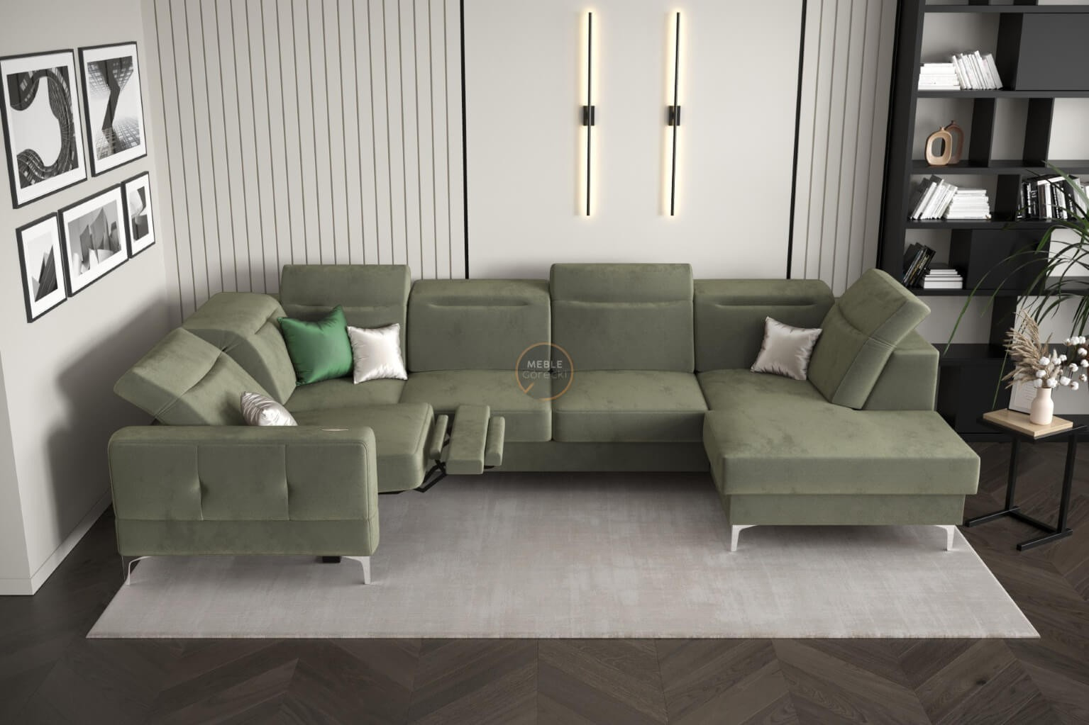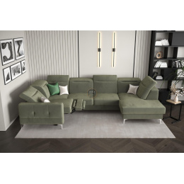 Rohová sedací souprava MALIBU MAX II s funkcí spaní a relaxací 180x350x182 cm - Olivová , levá strana