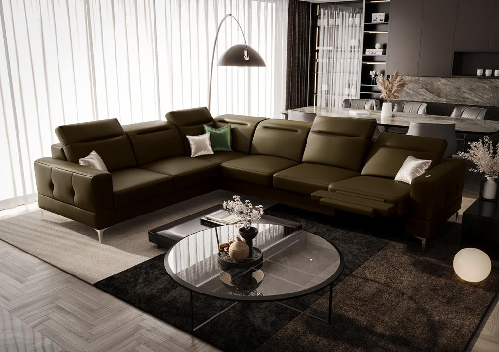 Rohová sedací souprava MALIBU MAX , relax 320x250 přírodní kůže - pravá