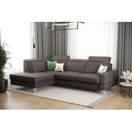 Rohová sedačka má nastavitelné, vícestupňové opěrky hlavy, chromované ozdobné nožky, sedáky s ozdobným prošíváním, které jsou vyrobeny na vlnitých pružinách a vysoce elastické pěně, což zajišťuje vysoký komfort používání a zabraňuje deformaci nejčastěji používaných ploch.