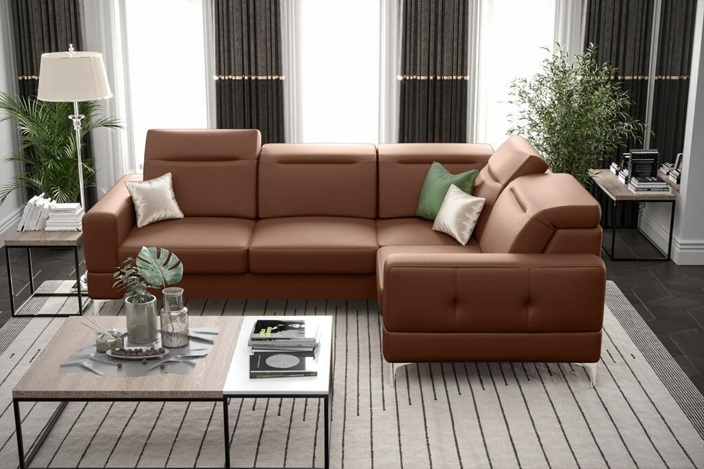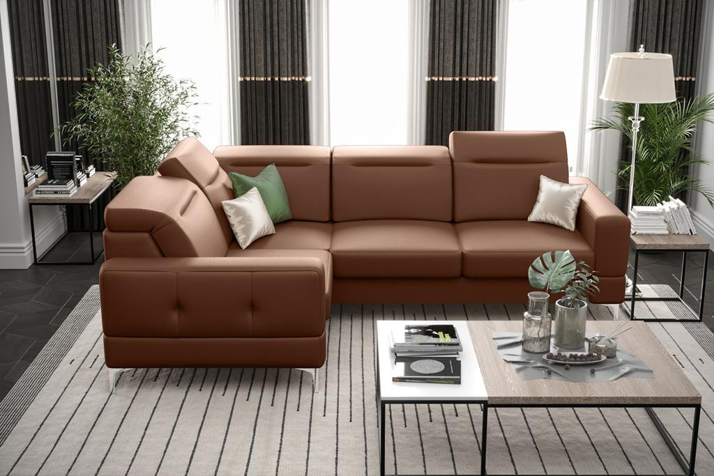 Rohová sedačka Malibu je výjimečný produkt, který spojuje prvky nadčasové klasiky s nádechem modernosti. Díky vysokému opěradlu a nastavitelným opěrkám hlavy je nábytek velmi pohodlný. Celek podtrhují 13 centimetrů vysoké kovové nohy.